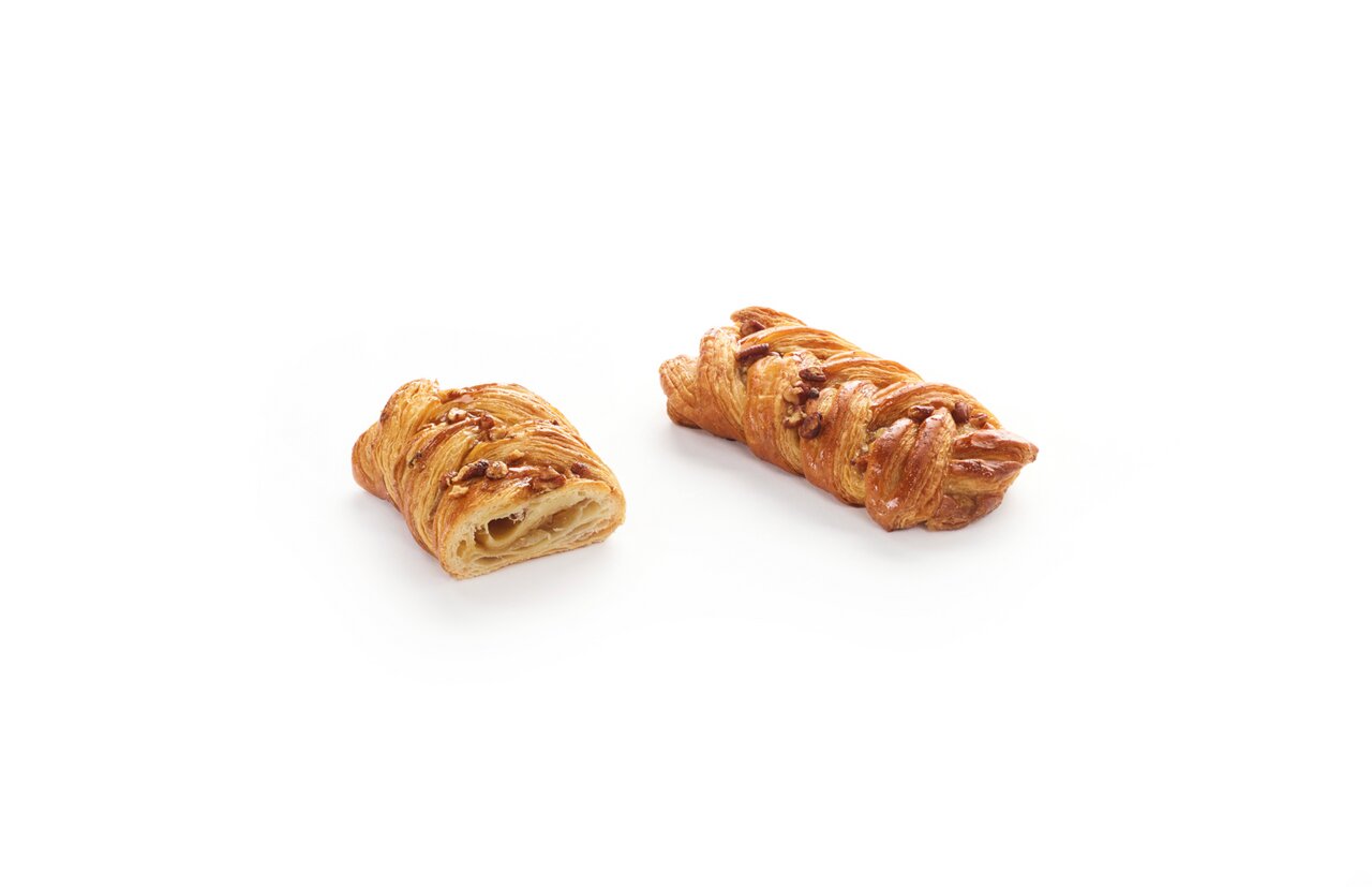 TARWEBLOEM, water, palmolie, suiker, PECANNOTEN (3%), raapzaadolie, EIEREN, bruine suiker, glansmiddel (isomalt), gejodeerd zout (zout, kaliumjodaat), maïszetmeel, gist, maïsmeel, zout, emulgatoren (lecithinen, mono- en diglyceriden van vetzuren), gluten (TARWE), ahornsiroop (0,05%), zuurteregelaar (citroenzuur), weipoeder (MELK), aroma, vezels (citrus), natuurlijk aroma, meelverbeteraar (asc orbinezuur), enzymen, conserveermiddel (kaliumsorbaat), geleermiddel (agaragar).